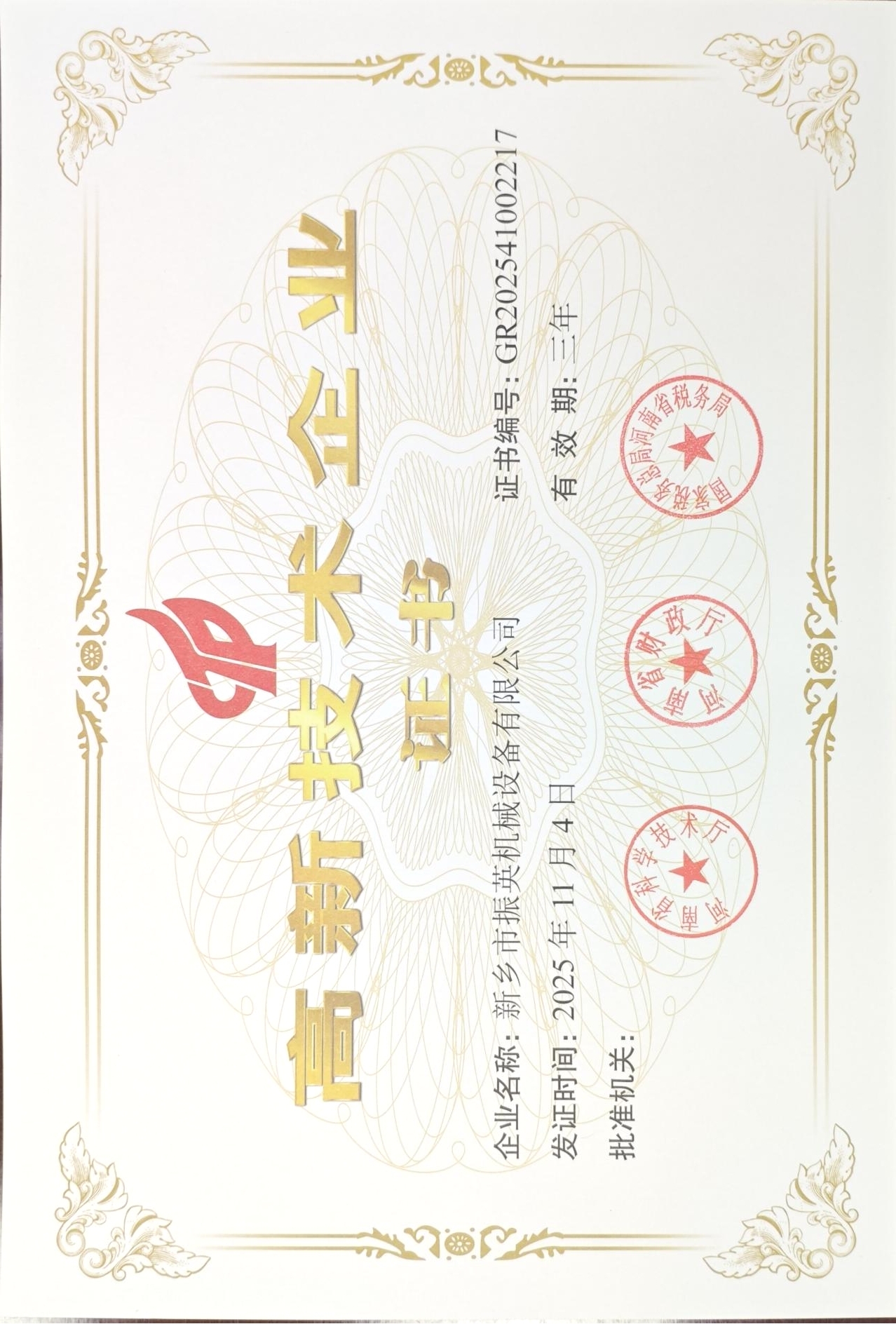 高新 技術企業認證證書