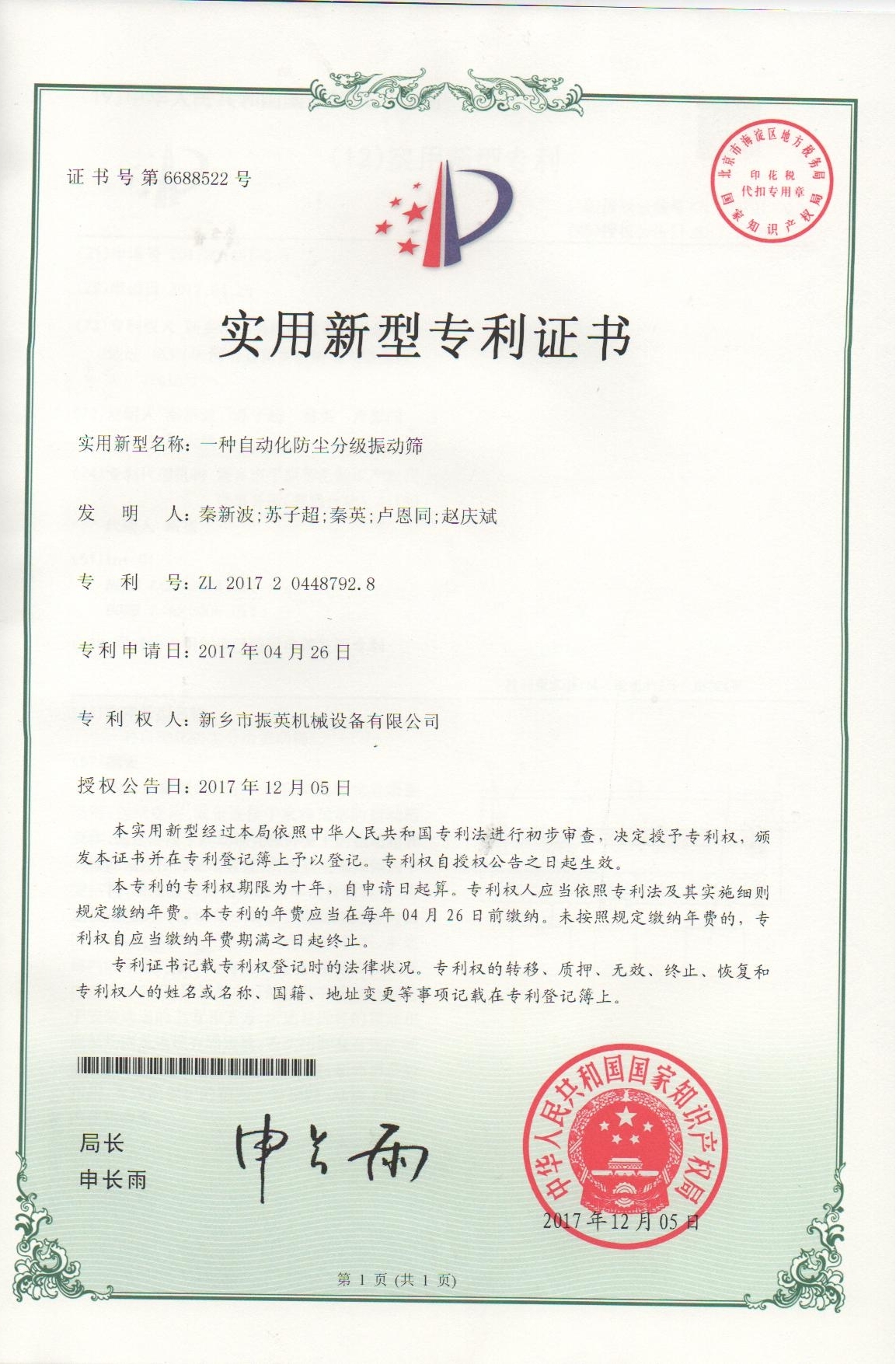 實用新型證書